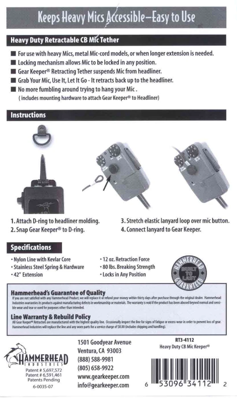 Bestel vandaag nog de Gear Keeper RT3-4112 en ervaar het gemak van een heavy duty mic retractor die altijd met je meewerkt.